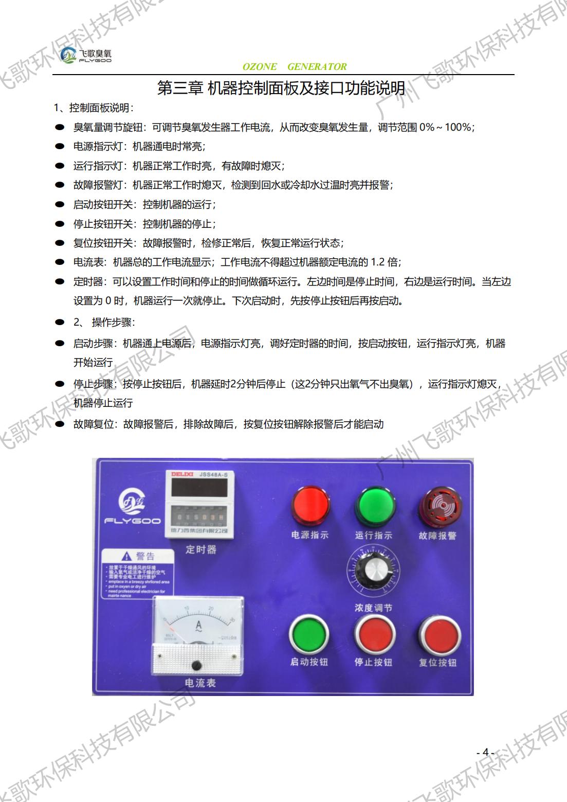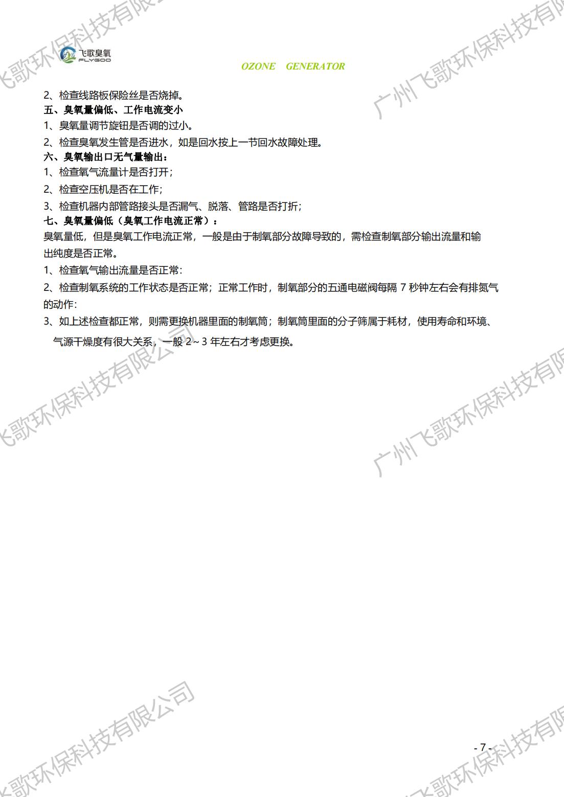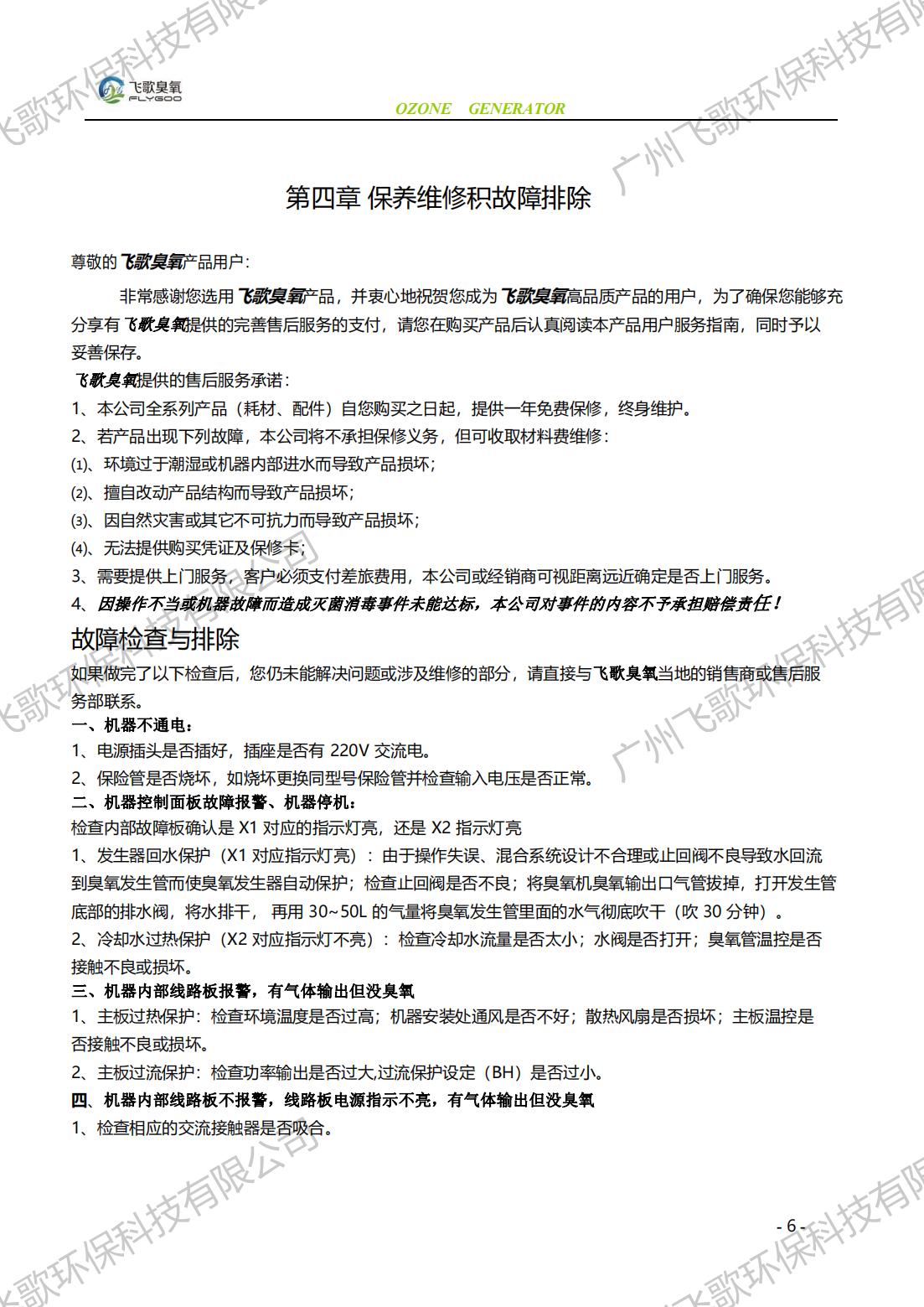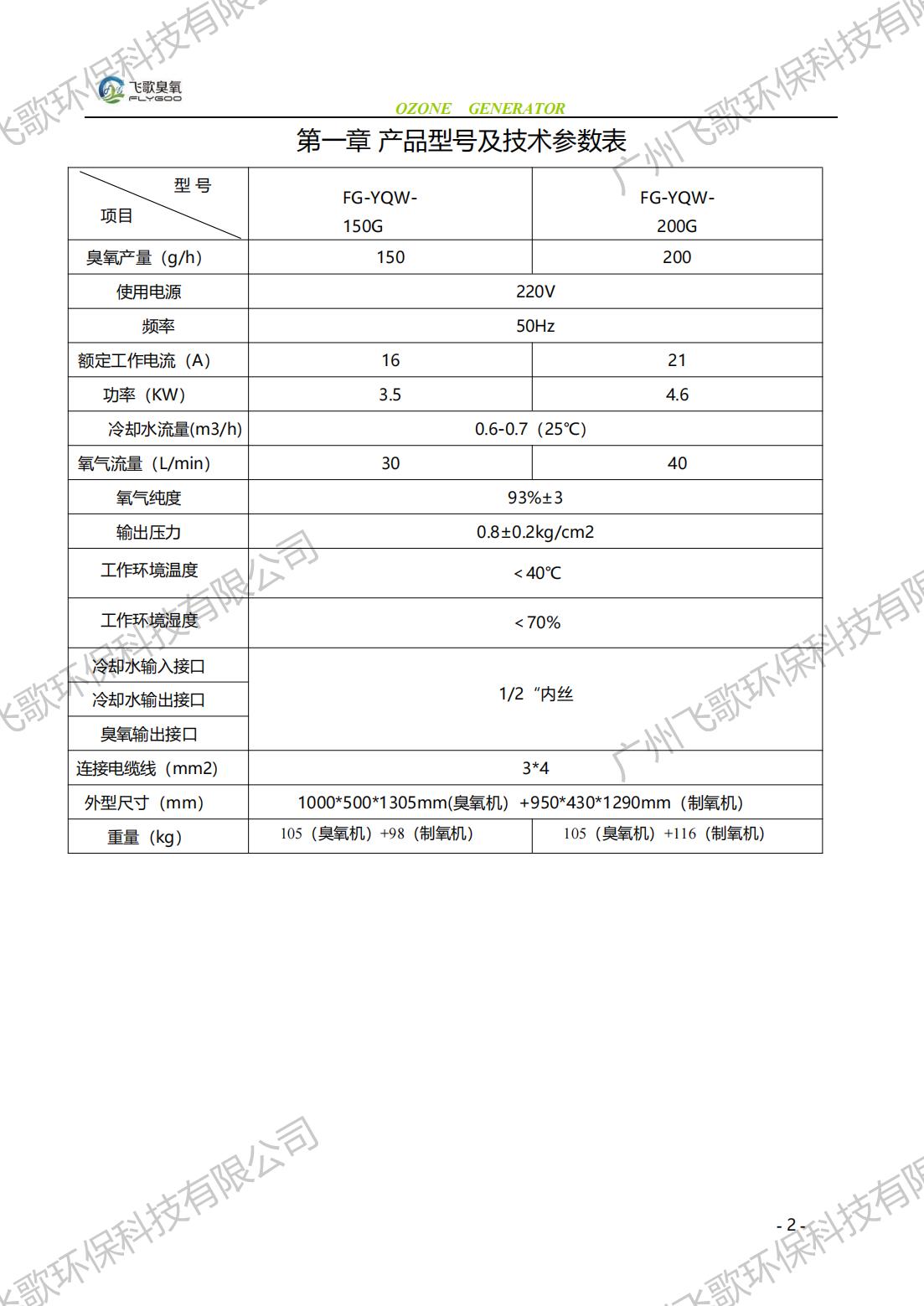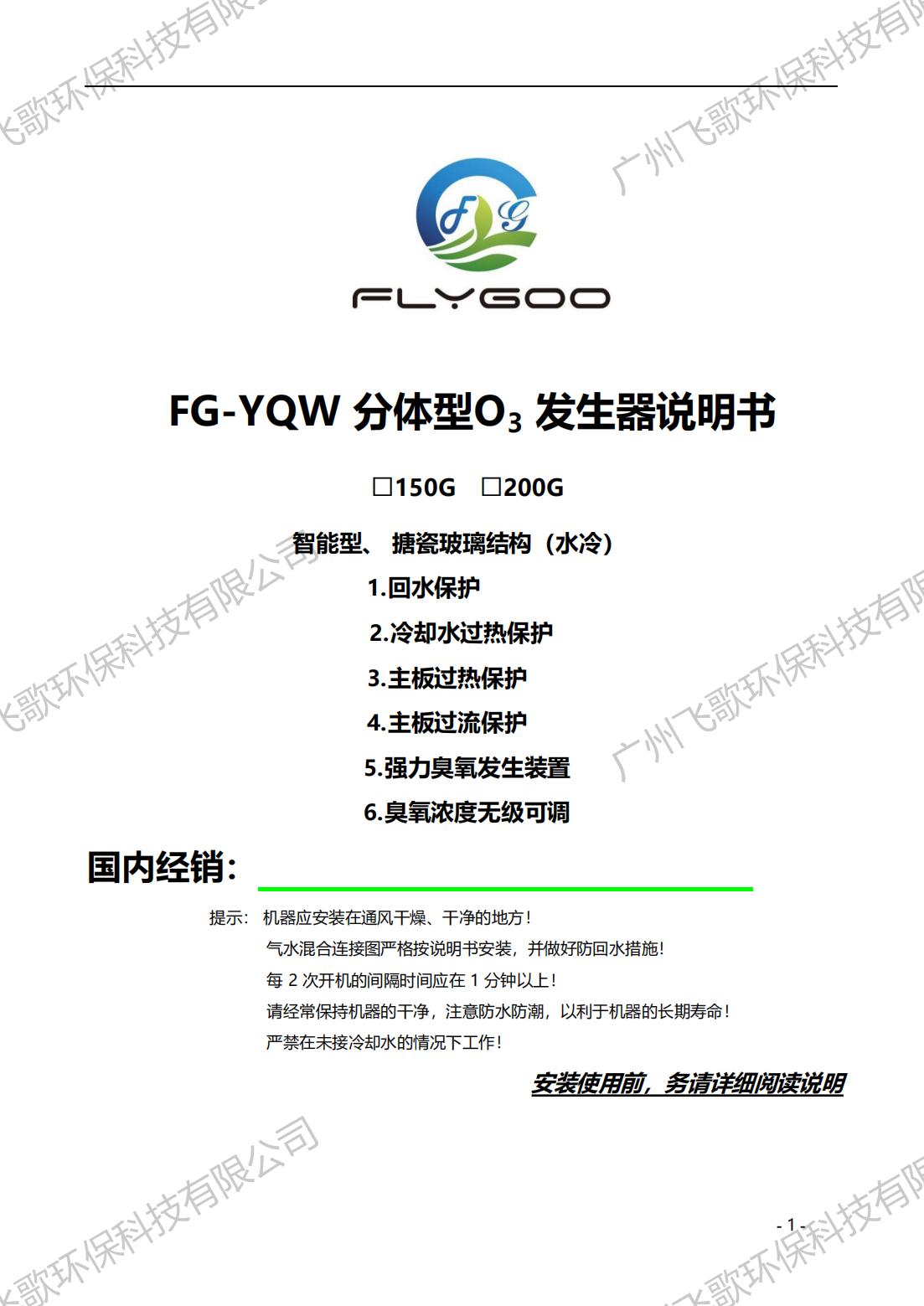 飛歌FG-YQ-150-200臭氧發(fā)生器產(chǎn)品使用說明書